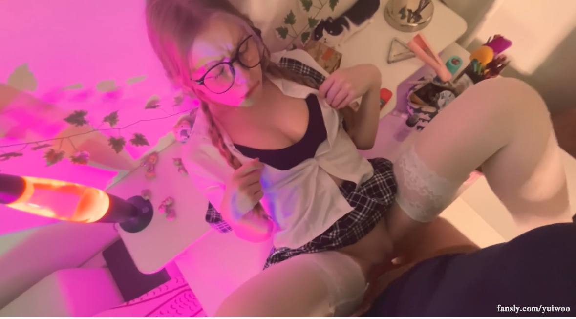 戴眼镜的女学生画阴莘而不是家庭作业,并在桌子上被性交