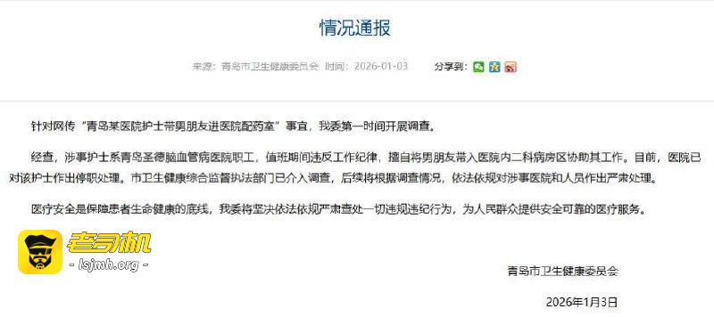 1月3日,青岛市卫生健康委员会发布情况通报,涉事医院已对该护士作出停职处理,市卫生健康综合监督执法部门已介入调查。