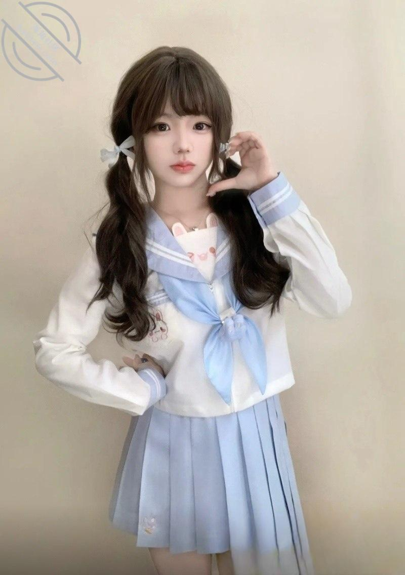 但那对奶子可不老实,衬衫扣子都快崩开,屁股更是翘得离谱,裙子短得稍微一低头就能看见粉色小内裤勒进逼缝里。