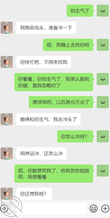 哎呀,说跑偏了,继续说雪姐,然后雪姐在微信中就不停的埋怨我,我感觉她就像是个小媳妇一样,让我心里还暖暖的。
