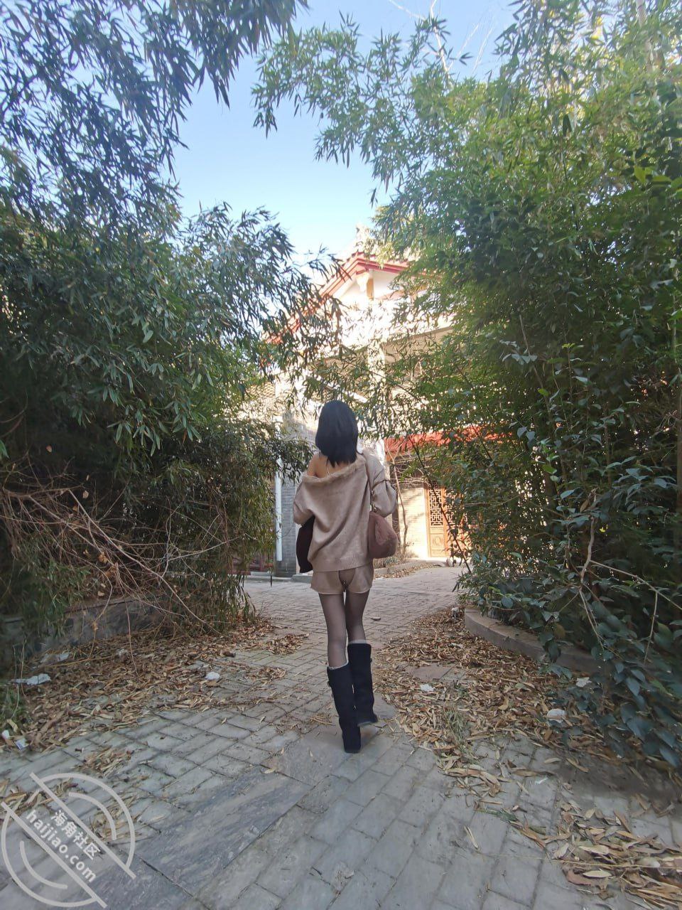 黑丝长靴露肩装表妹,第一次户外忽悠口