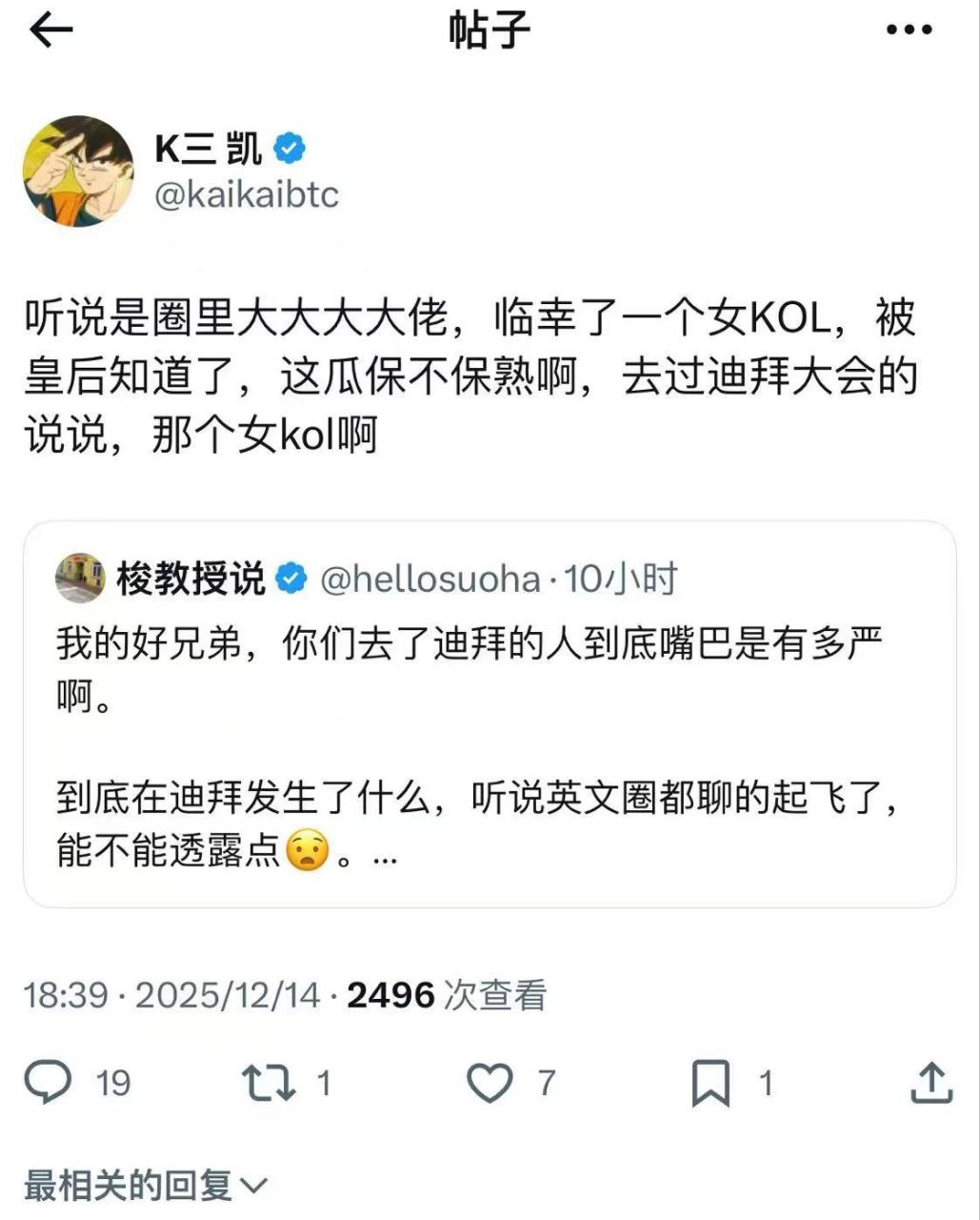 圈各大社群被一条劲爆大瓜刷屏:传言前币安CEO CZ在迪拜参加大会期间,疑似出轨某外籍美女KOL