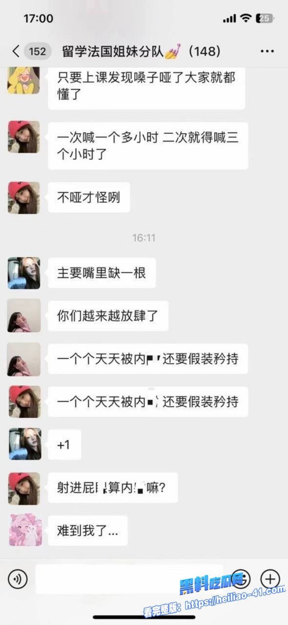 中国女留学生 法国小分队 148人聊天记录曝光 牢A怒揭留学姐妹玩得太开放 尺度炸裂到无法想象!